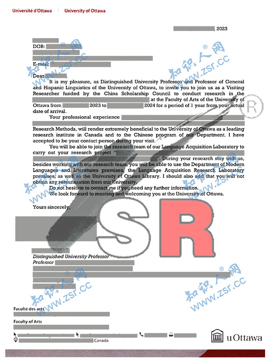 经过进一步的努力,最终我们获得了加拿大渥太华大学及澳大利亚南澳大学的邀请函,比较之后,H老师选择了前者。因渥太华大学的接收导师就是该校现代语言文学系和语言学系教授,同时也是语言习得研究实验室主任,且研究方向就是第二语言习得、理论语言学以及语言接触等,跟随其学习研究,H老师必将受益匪浅。