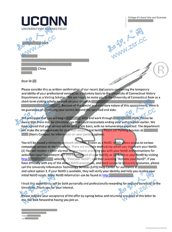 D老师拟申报CSC国家公派访问学者项目,拿到邀请函是关键点,在自己申请受挫后委托我们,希望能投入美国专业契合的导师麾下开展研究。最终我们为其争取到美国“公立常春藤”高校—康涅狄格大学的邀请函,并助其获批CSC。签证时,在完成社交媒体补件后,D老师顺利过签,如期出国。