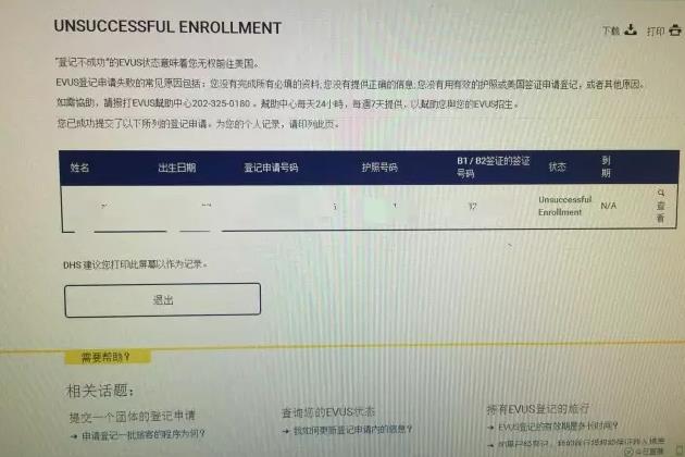 一、如果登记状态显示“Unsuccessful Enrollment”,无须重新申请签证,等待24小时之后可重新登记!