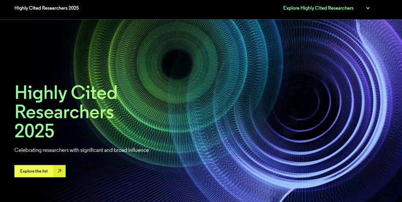2025年11月,科睿唯安(Clarivate)发布了2025年度“全球高被引科学家”(Highly Cited Researchers)榜单。