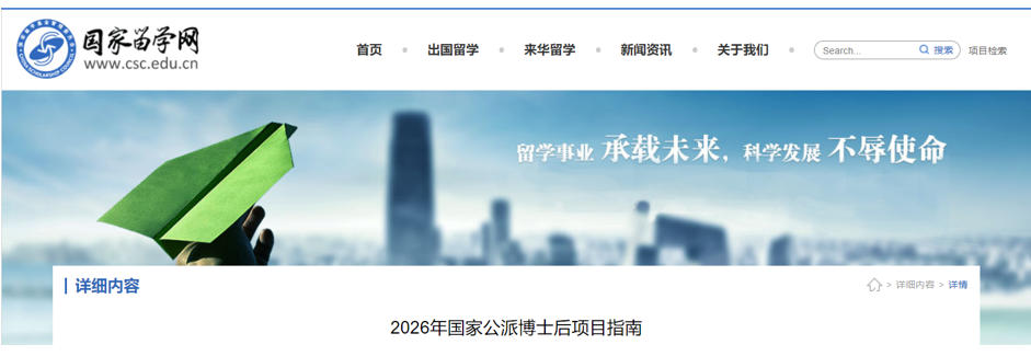 2026年国家公派博士后项目指南
